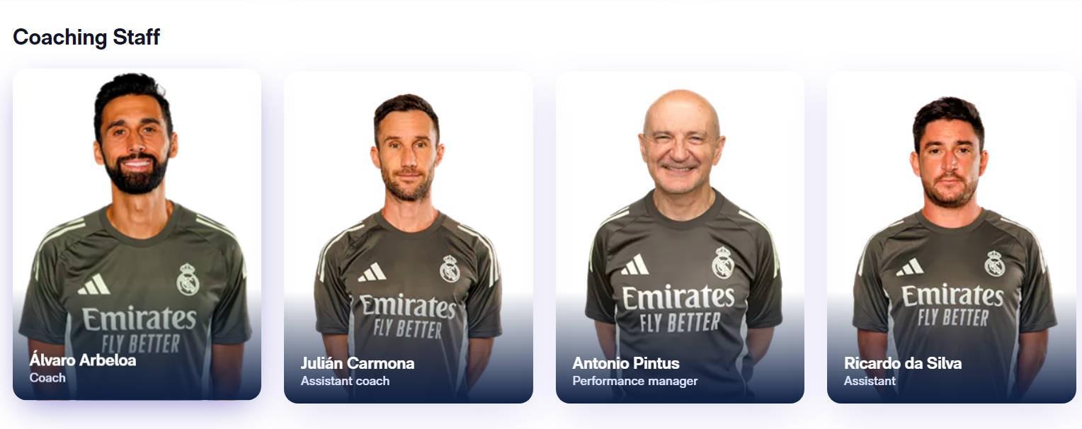 皇马一线队教练组完整名单: